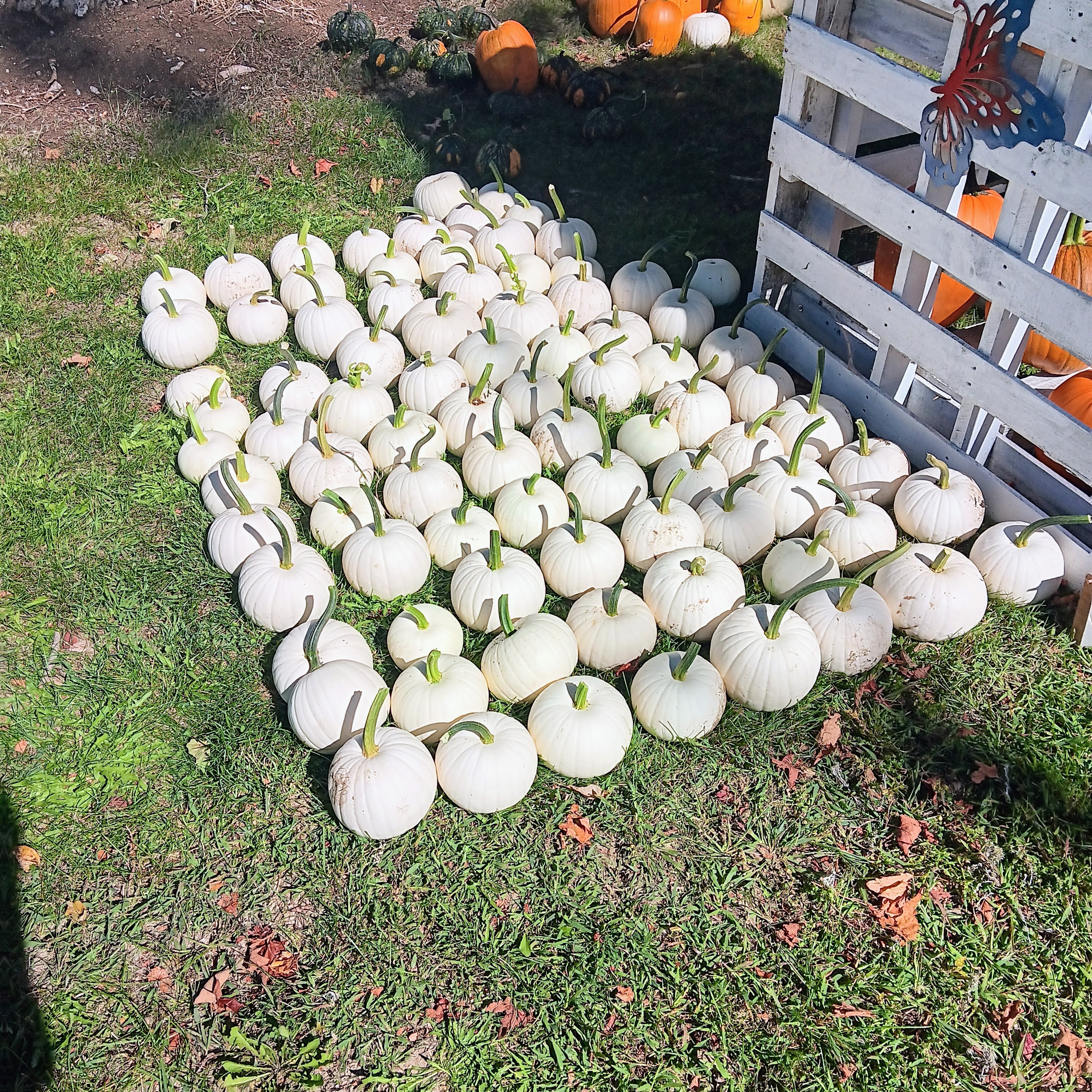 What I am left with is, tons of small white pumpkins and a large number of pie pumpkins and gourds. So it still looks like fall out in front of the house.
